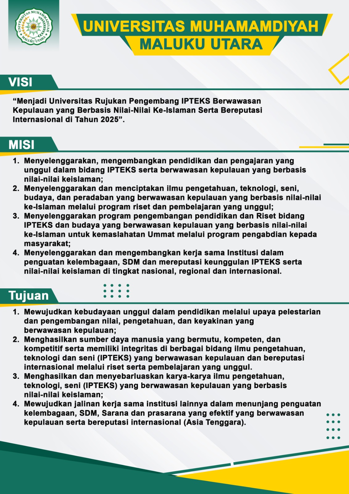 Menjadi Universitas Rujukan Pengembangan IPTEKS Berwawasan Kepulauan yang Berbasis Nilai-Nilai Ke-Islaman Serta Bereputasi Internasional